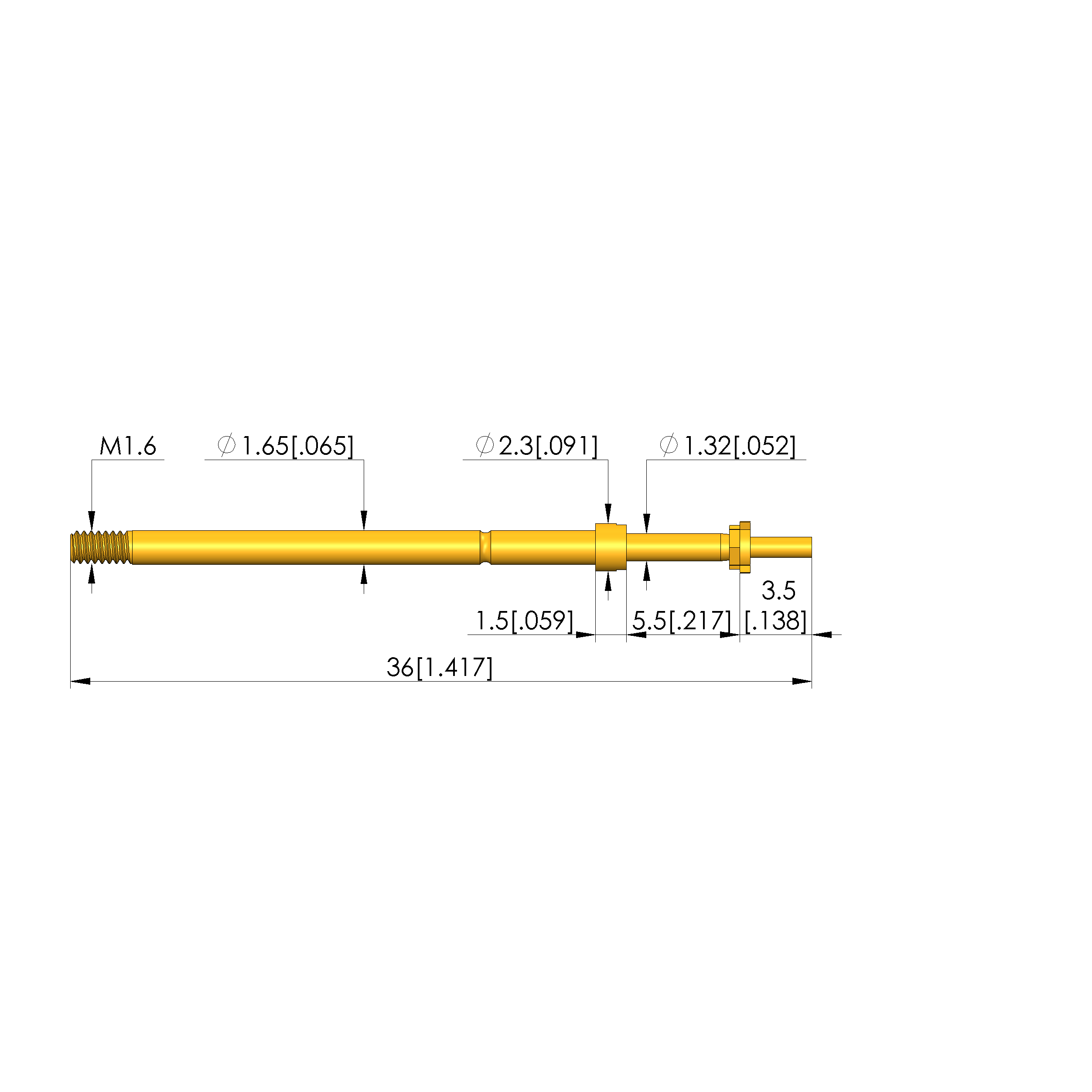 - Barrel diameter: 1.65 mm [.064 in]