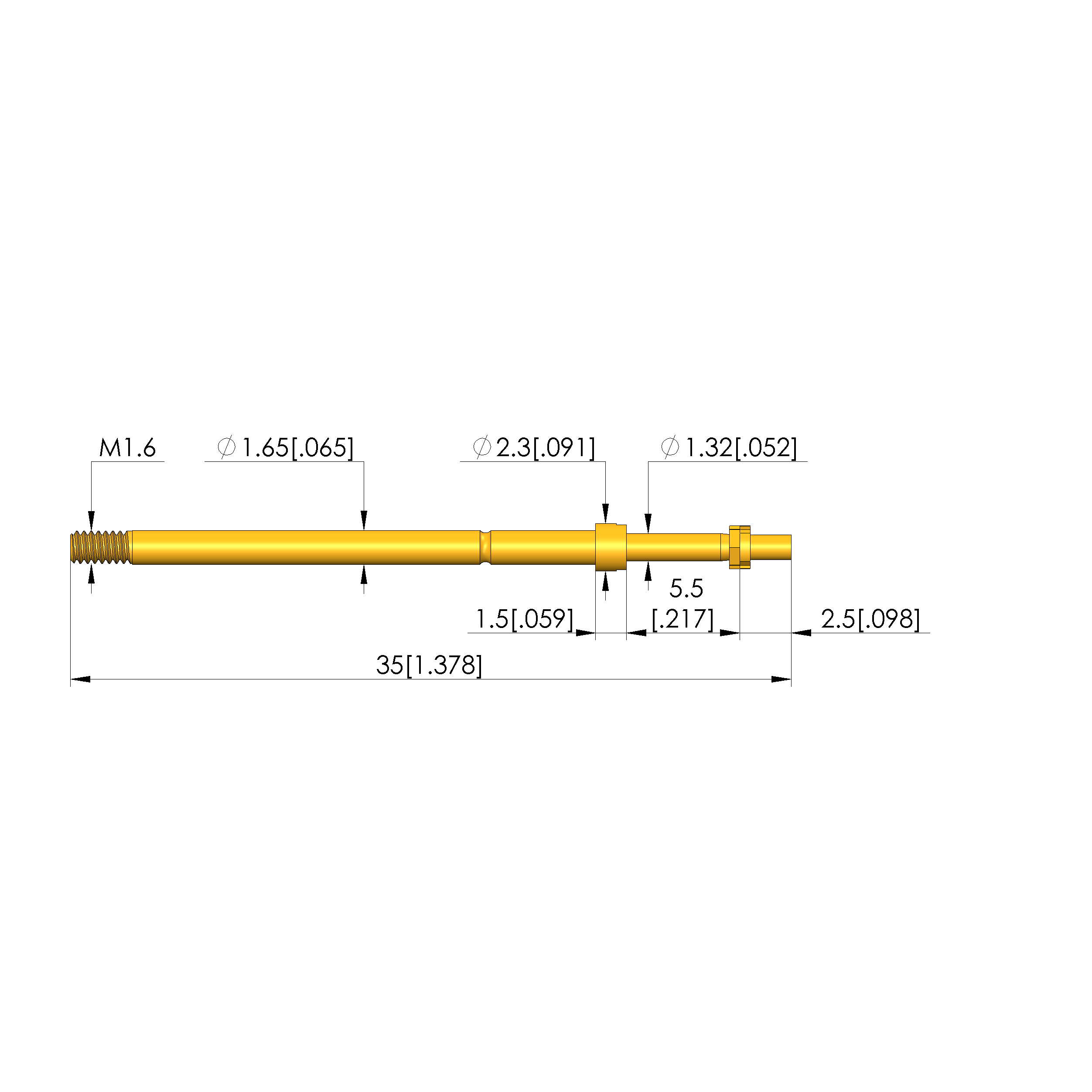 - Barrel diameter: 1.65 mm [.064 in]