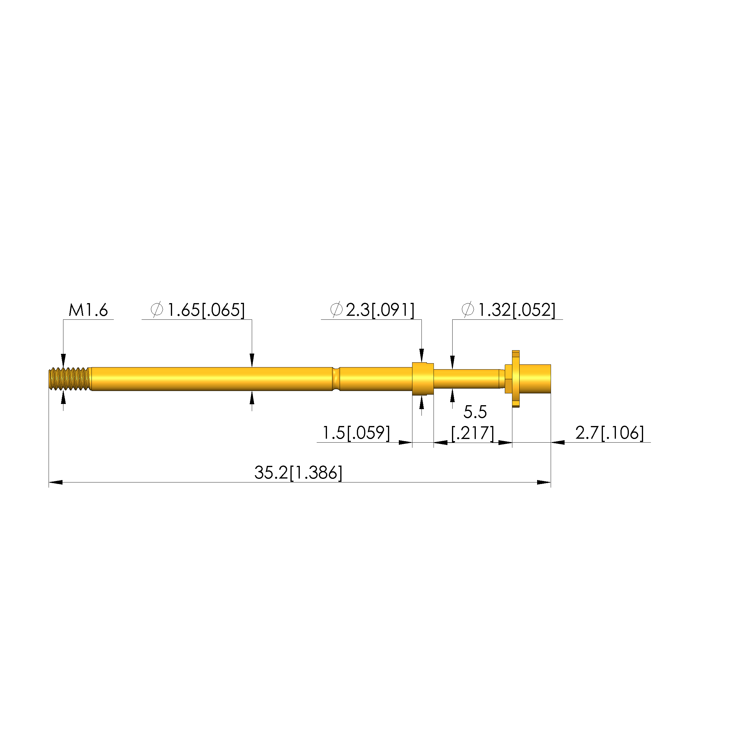 • Total length: 35.2 mm [1.38 in]