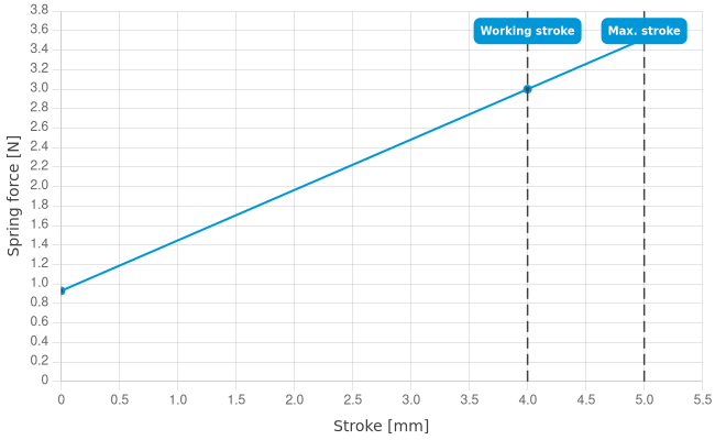 | Spring force at working stroke: | 3 N [10.7 ozf] |