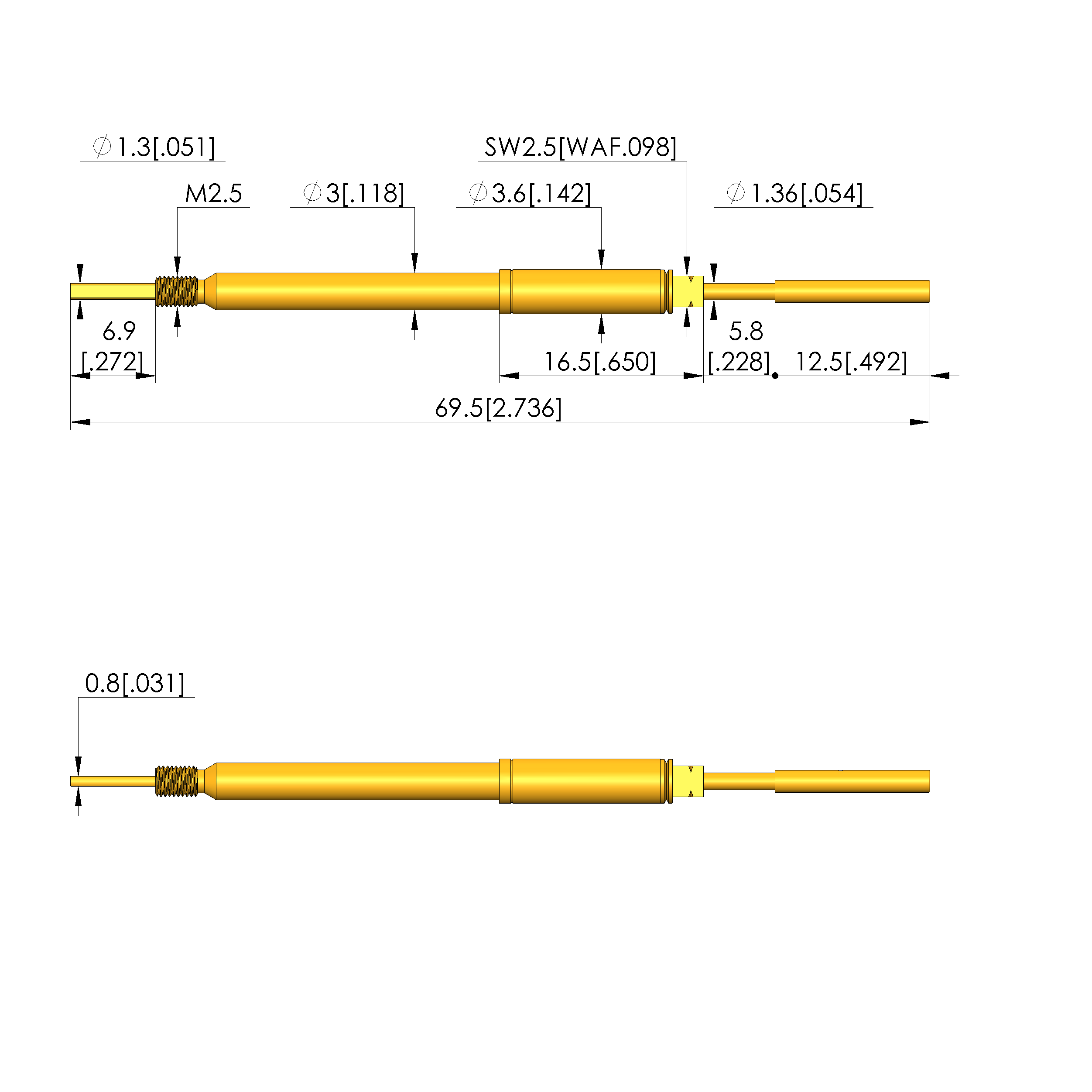 | Continuous plunger: | ø1,3 x 0,8 x 6,9 |