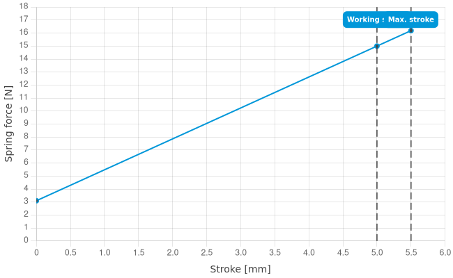 - Spring force at working stroke: 15 N [53.9 ozf]