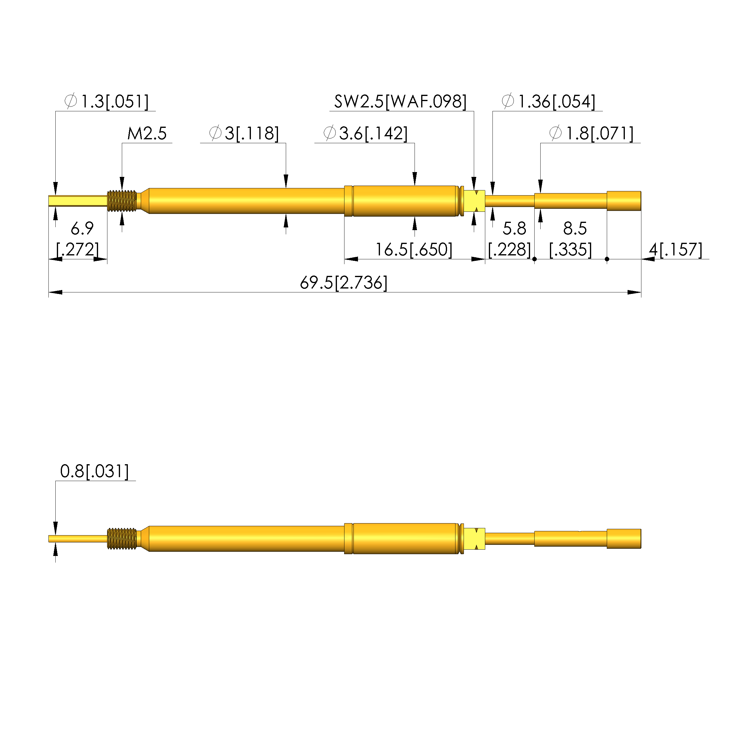 | Total length: | 69.5 mm [2.73 in] |