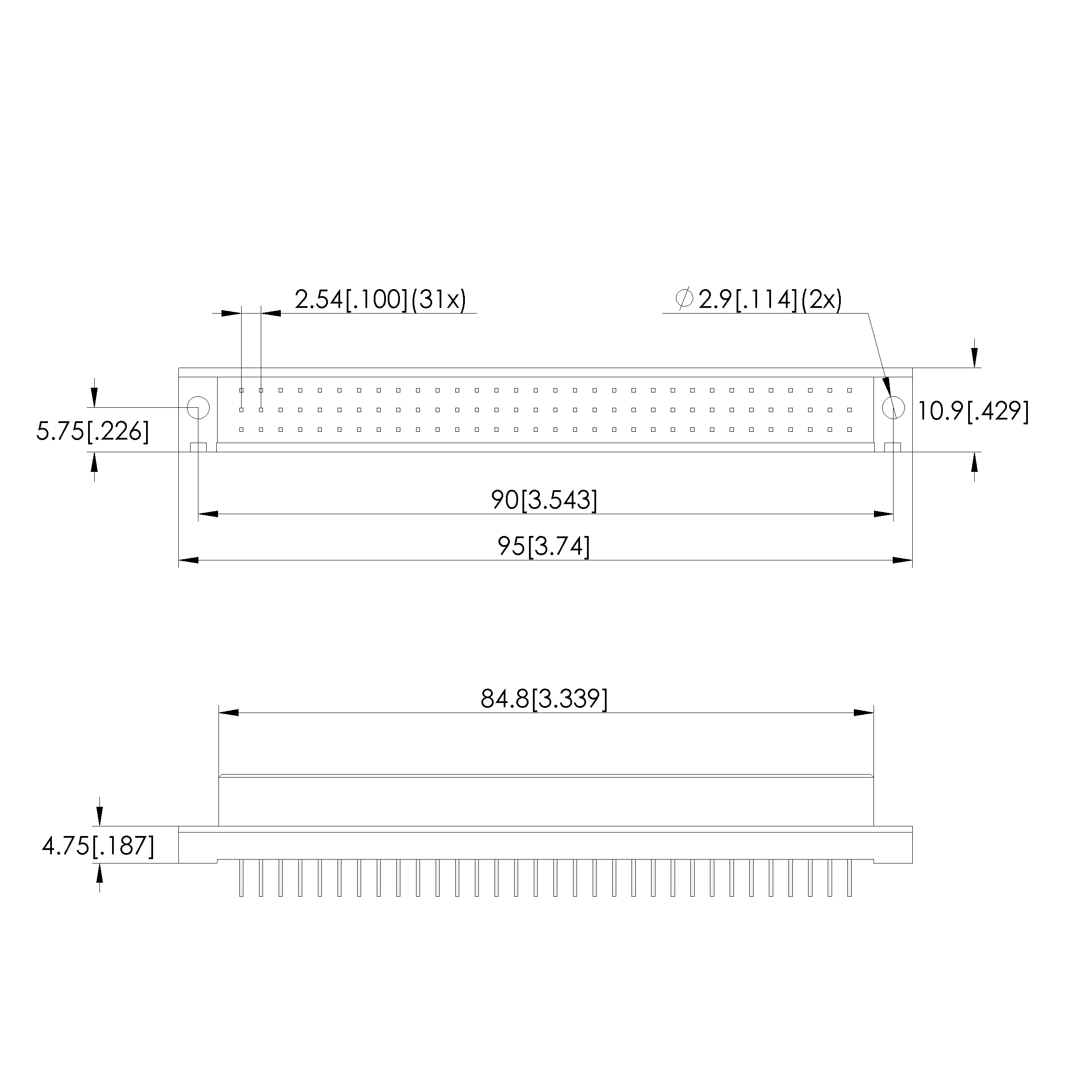 - Outer dimensionS (WxDxH): 95 x 10.9 x 15.8 mm [3.74 x .429 x .622 in]