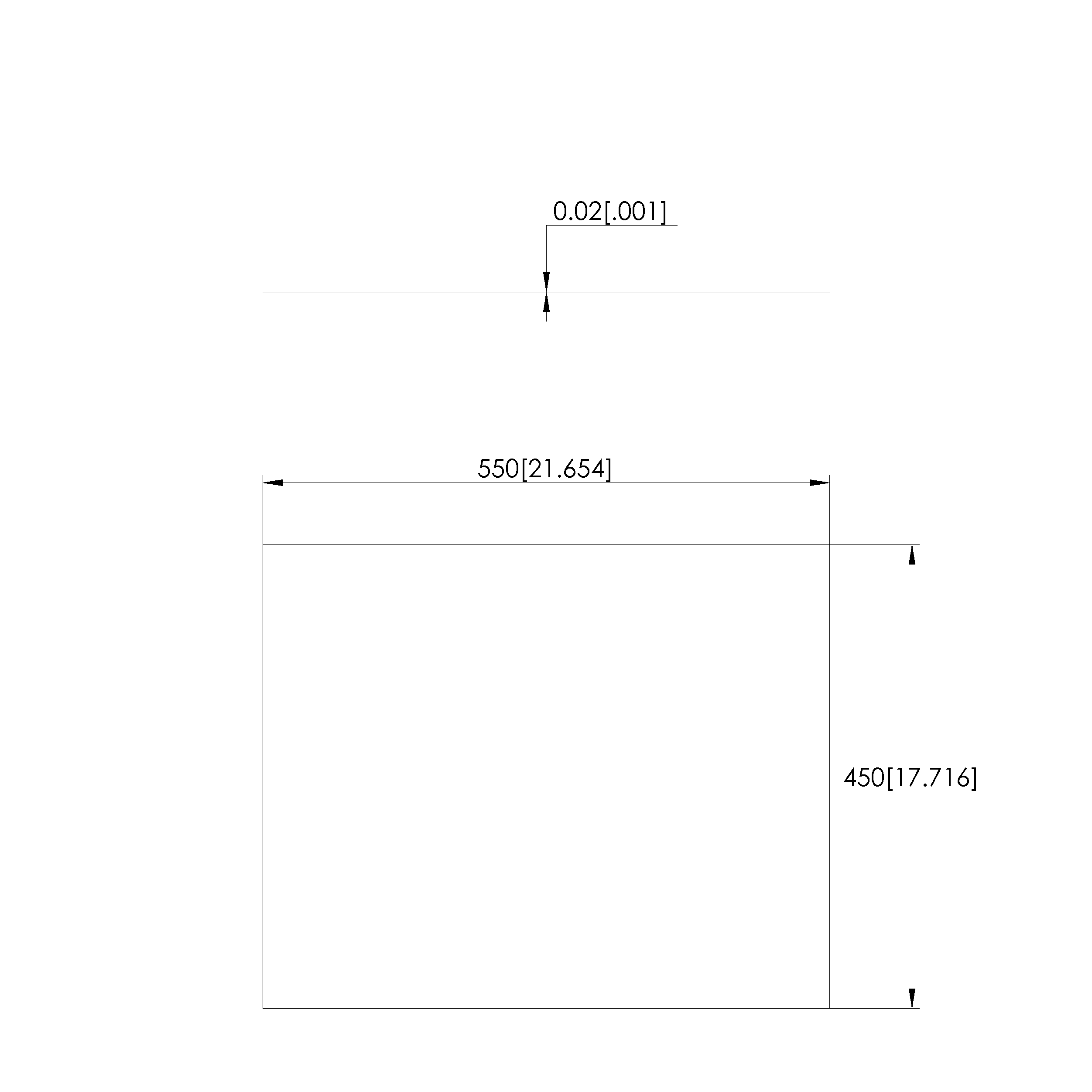 • Outer dimensionS (WxDxH): 550 x 450 x 0.03 mm [21.6 x 17.7 x .001 in]